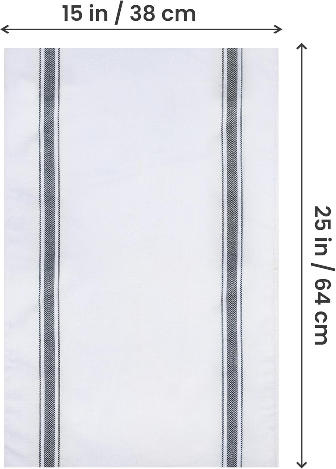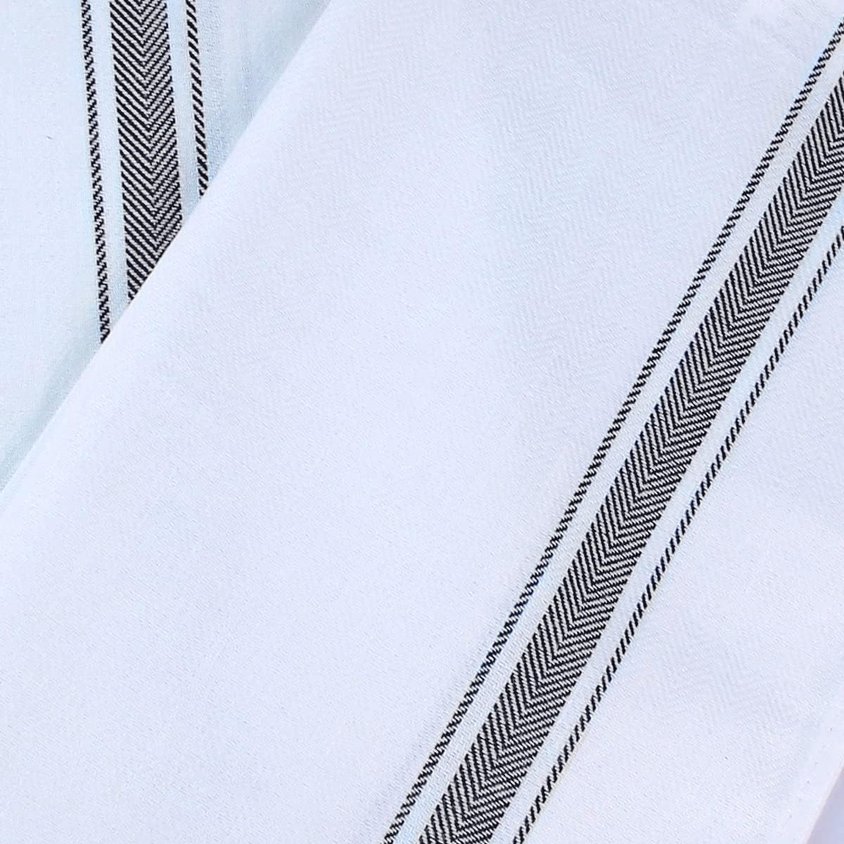The dish towels are durable and firm enough to withstand repeated uses and washings. The towels have a black stripe design woven into the fabric. Design is made with heat transfer vinyl.  Colors may vary.