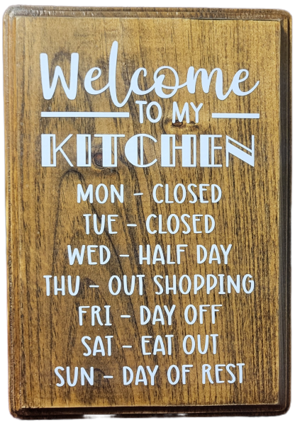 The sign features a picture hook on the back. Its sturdy construction ensures it holds up over time while maintaining its polished appearance. The indoor vinyl lettering in white stands out clearly against any background, allowing the text to be both legible and eye-catching. Please note that since the wood is pine, it may have some defects (knots or distressed look).